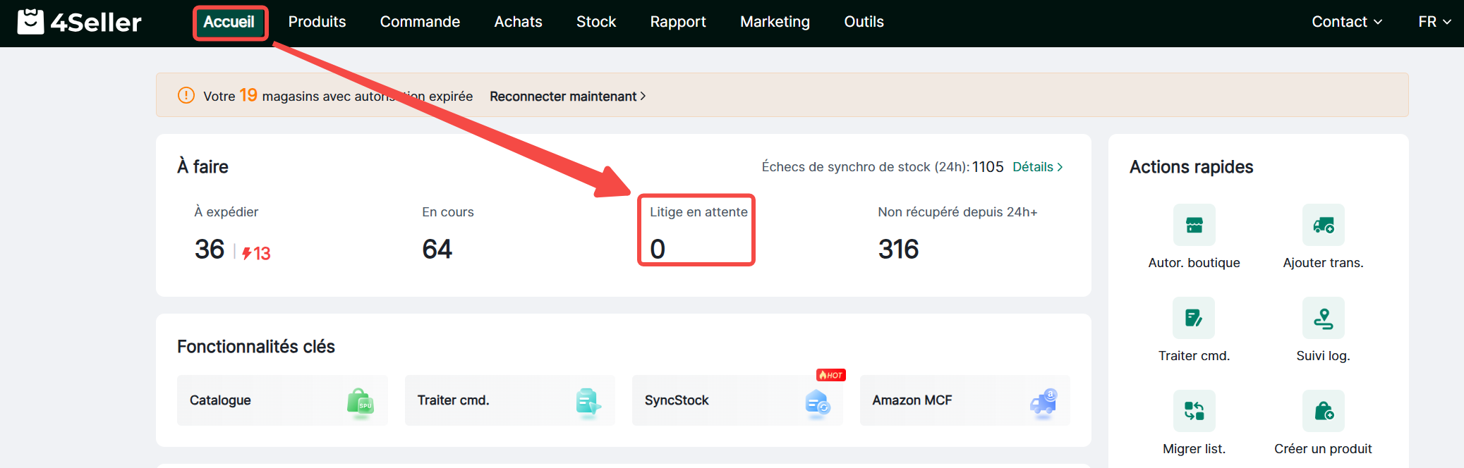 1. Page d'accueil - Litiges en attente