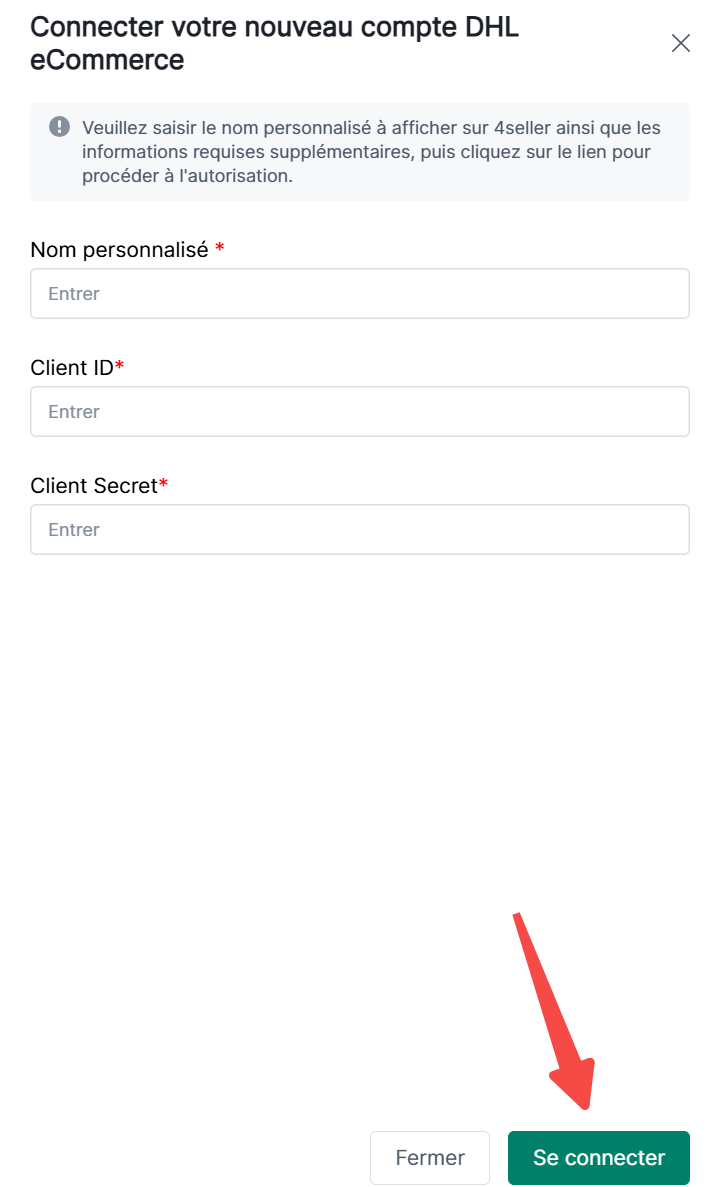 Étape 2 : Remplissez les informations et cliquez sur Connecter