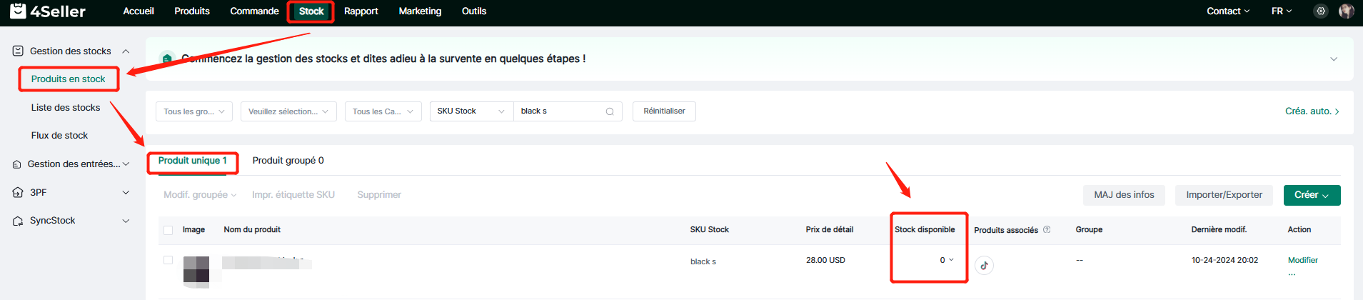 Si le SKU en stock n'est pas dans un seul entrepôt, vous pouvez basculer vers un entrepôt disposant de stock.