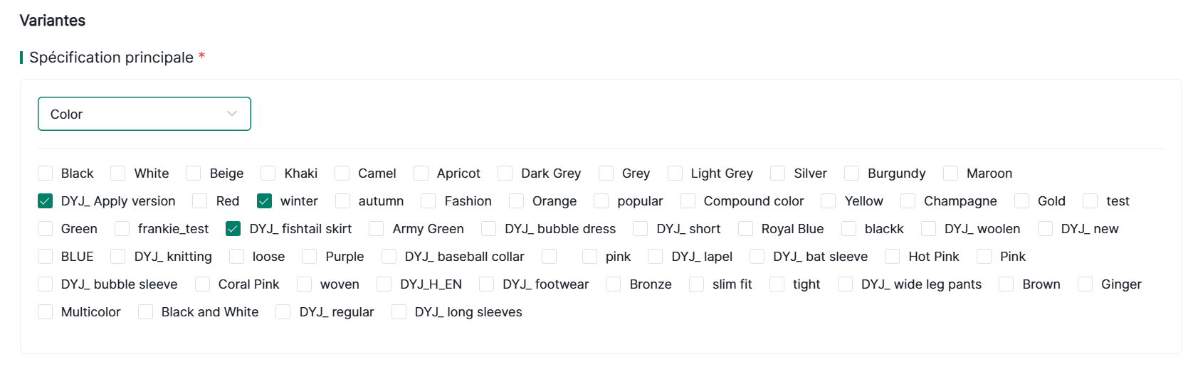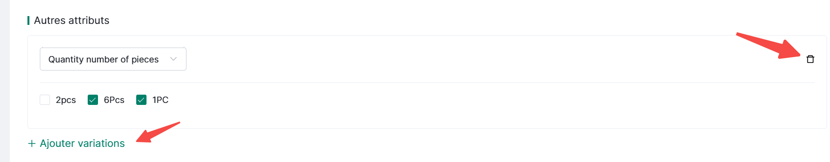 ② Autres spécifications : Les éléments marqués en rouge sont des attributs obligatoires. Vous pouvez ajouter des attributs personnalisés ou les supprimer selon les besoins.