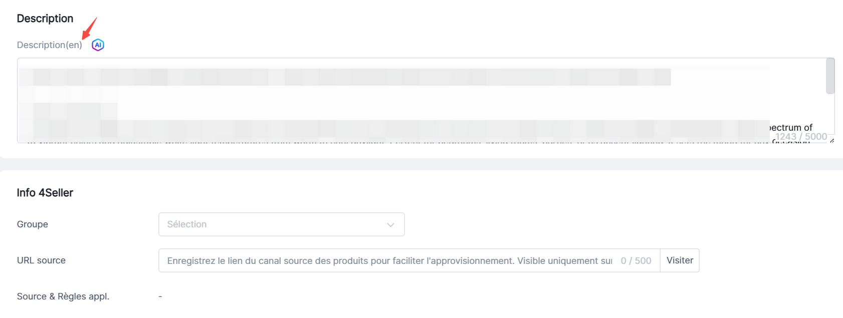 (5) Description : Cliquez pour générer une description avec l'IA ; renseignez la langue correspondante entre parenthèses.