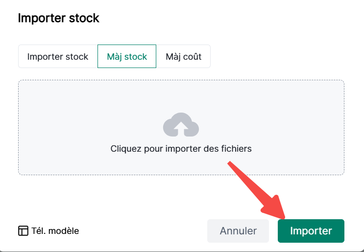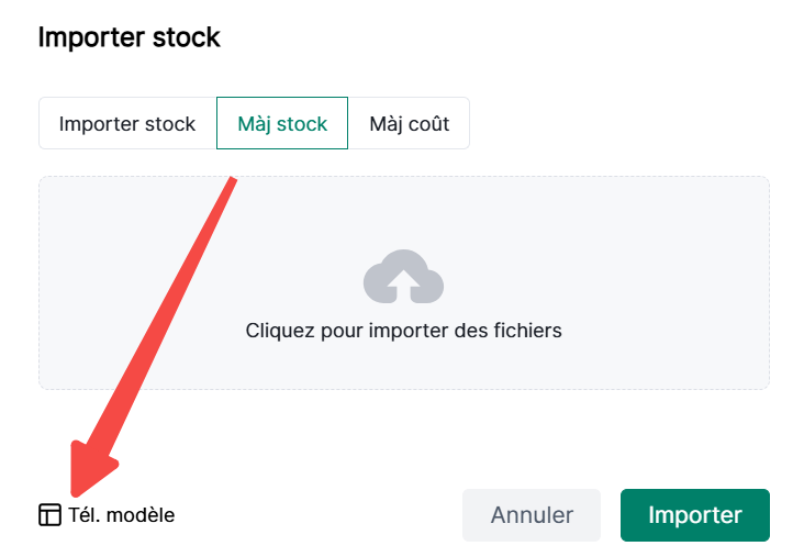 2. Sélectionnez Importer/Mettre à jour l'inventaire > Télécharger le modèle