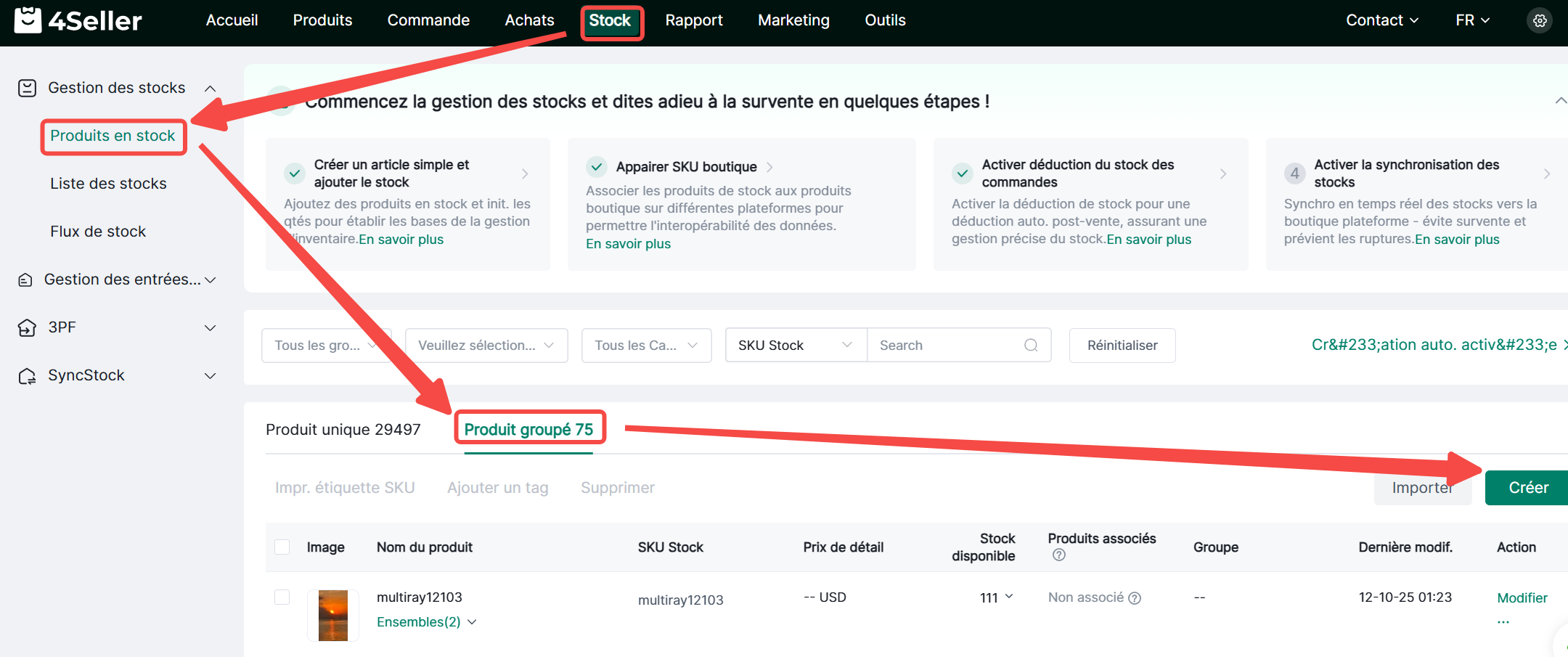 Consultez cet article d'aide pour créer un Stock Sku : Comment créer un Stock Sku ?Étape 2 : Créer un SKU Bundle