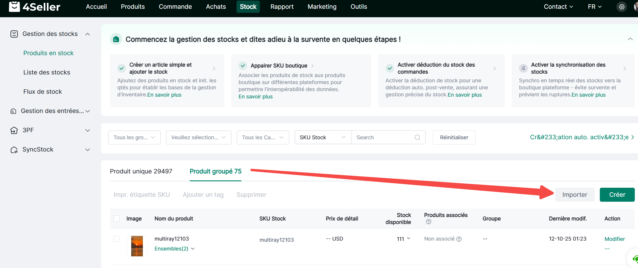 1. Inventaire -- Produits en Stock -- Bundle -- Importer