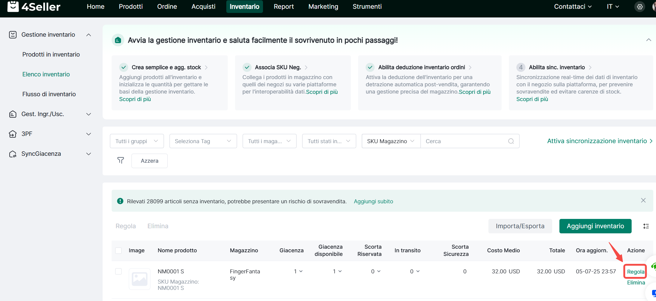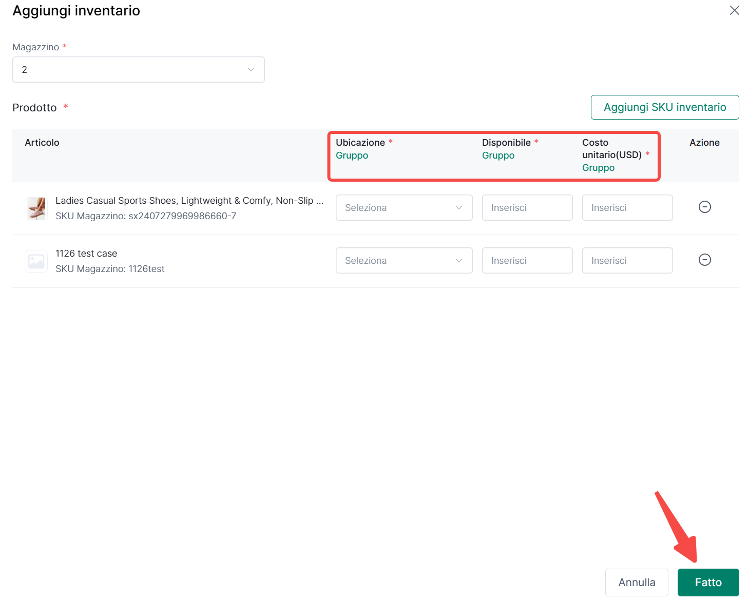 3、Come Aggiungere Singolarmente le Informazioni sull'Inventario SKU?