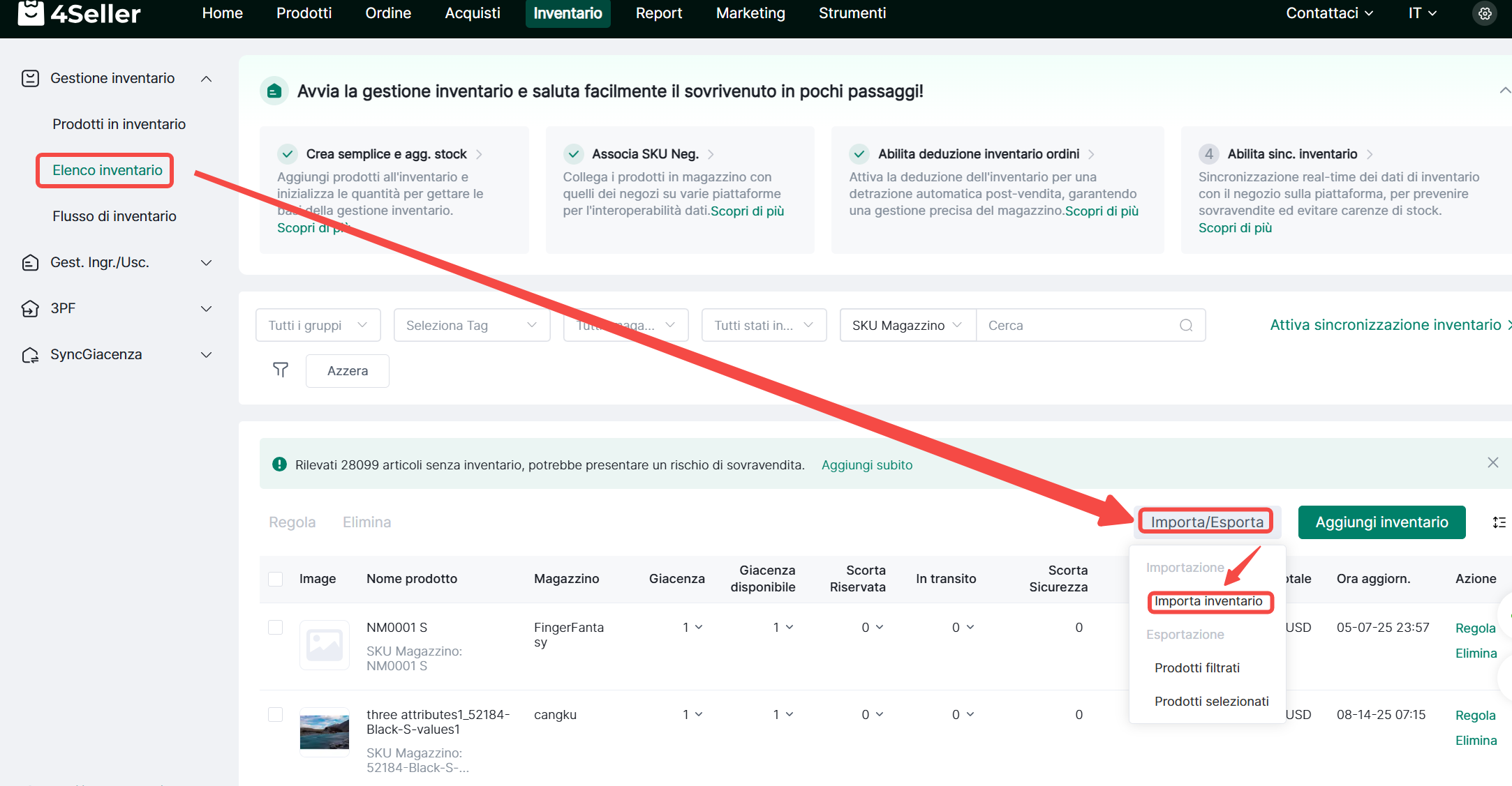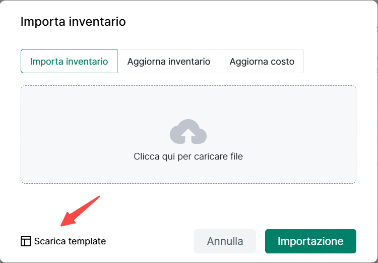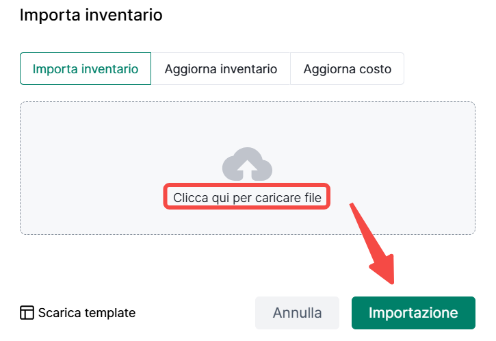① Vai a inventario> Clicca su "Importa inventario"