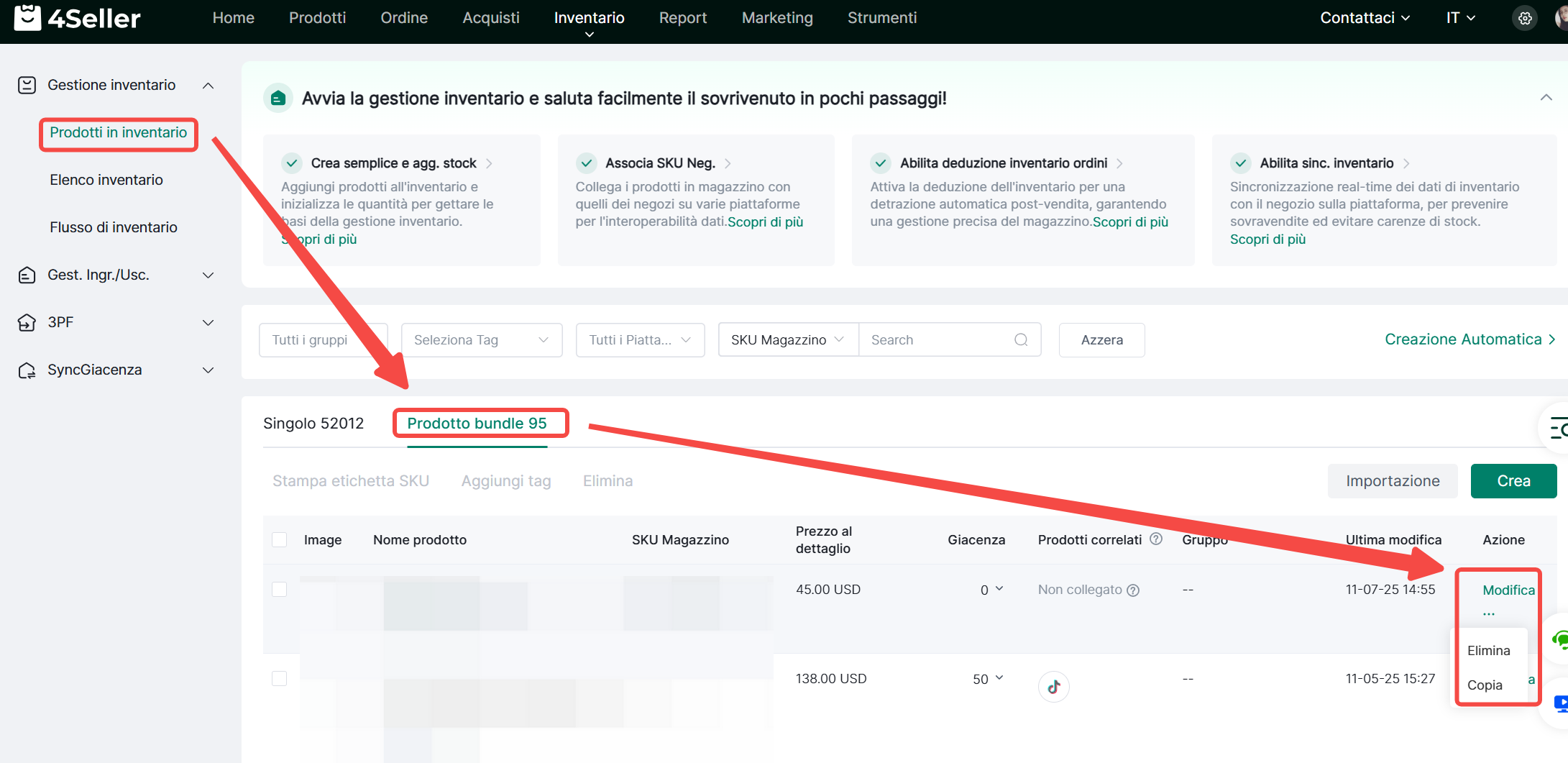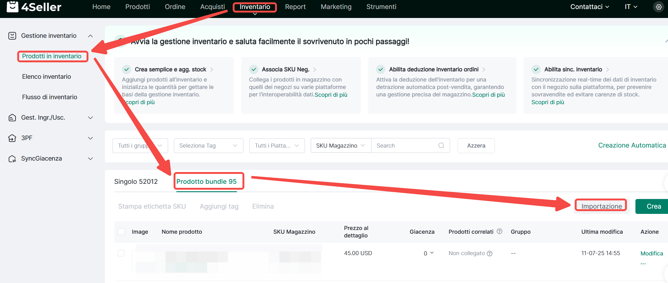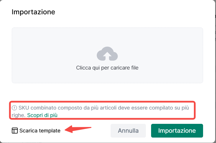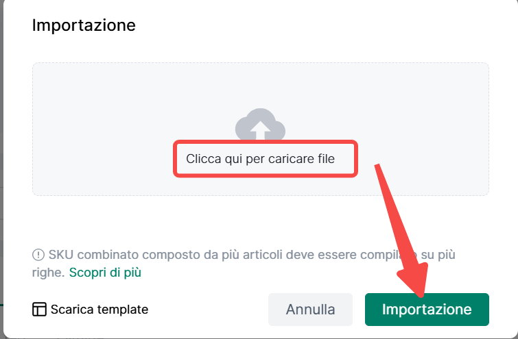 4Seller supporta l'importazione di SKU compositi, riferiti a prodotti venduti in confezioni con più SKU secondari (es: 1 penna + 1 taccuino). L'inventario verrà scalato contemporaneamente da tutti gli SKU secondari.