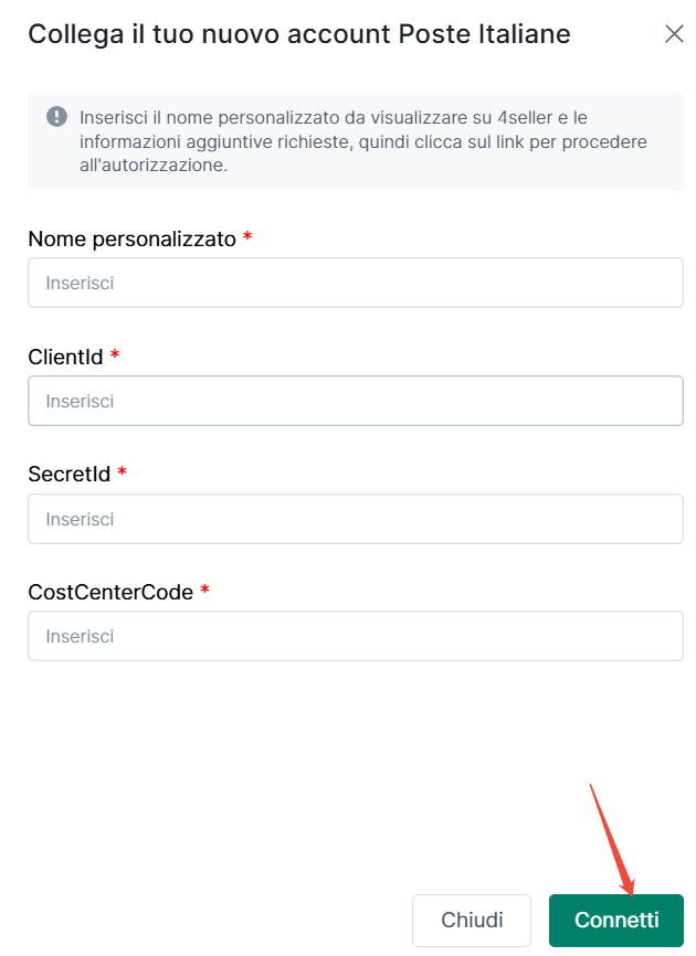 2. Compila il modulo a comparsa con i dati richiesti e clicca su Collega.
