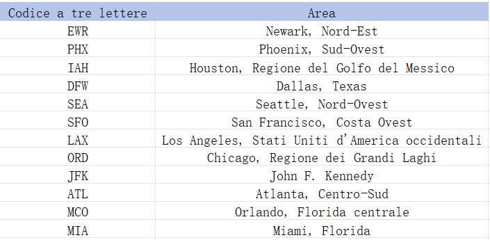 ① Entryport indica la regione dell'indirizzo del mittente. Il codice a tre lettere deve corrispondere all'area come segue: