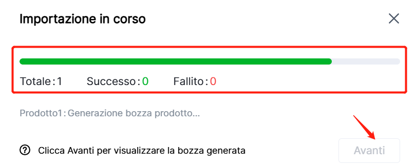 Durante il caricamento, clicca "Avanti" per modificare i draft su Amazon.