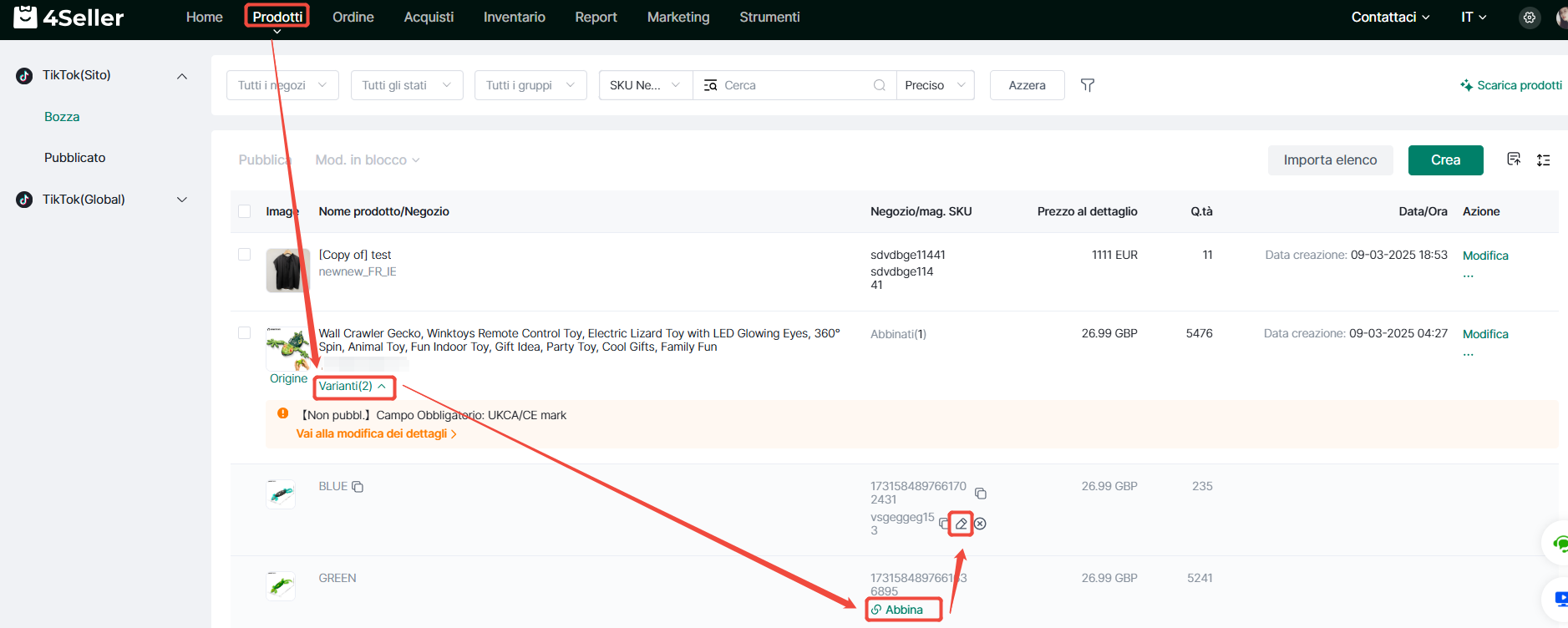 Per i prodotti che non riescono ad associarsi automaticamente, puoi associarli manualmente o modificare l'abbinamento cliccando sull'icona della matita.4. Accoppiamento del modulo ordini