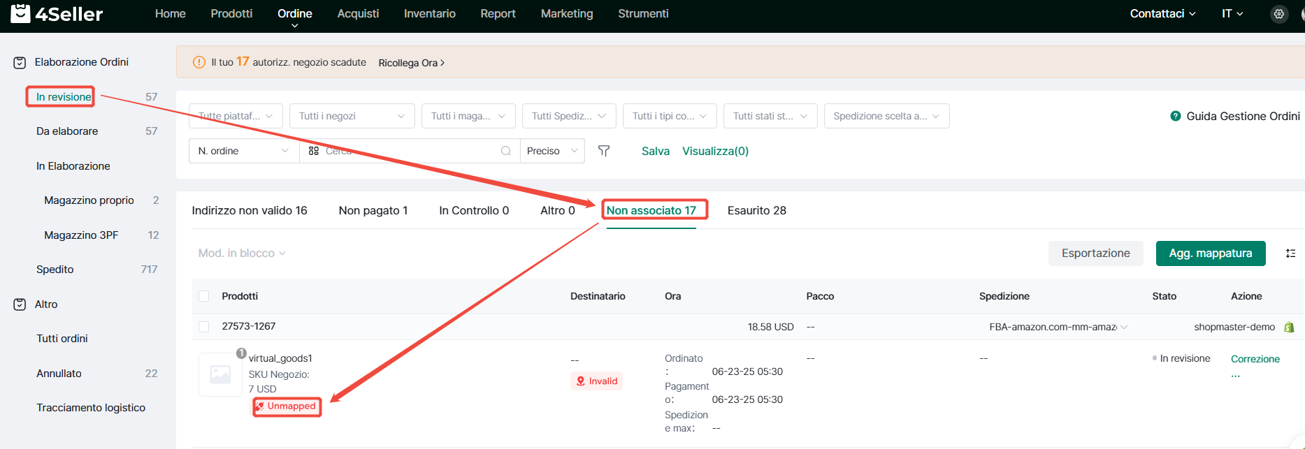 4Seller supporta la deduzione dell'inventario per i prodotti, richiedendo la corrispondenza tra lo SKU del negozio dei prodotti della piattaforma e lo SKU di inventario 4Seller.