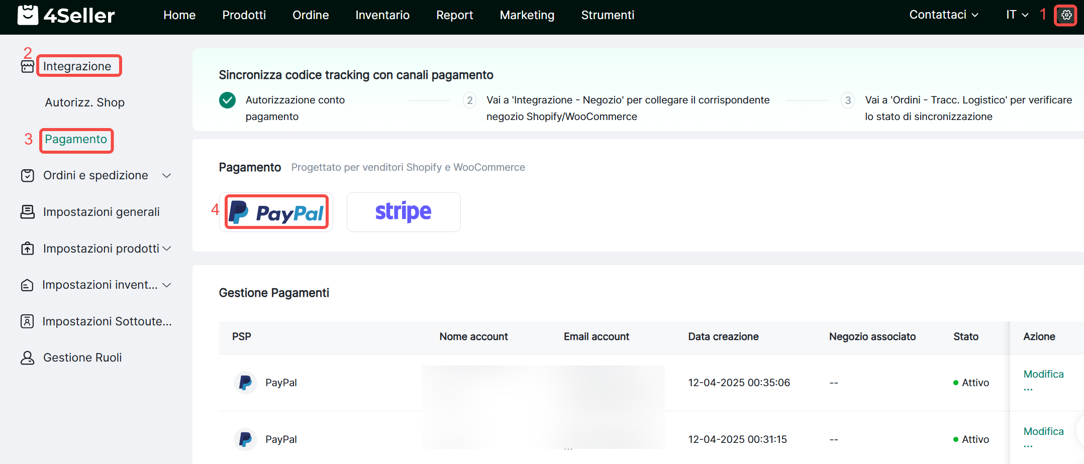 4Seller supporta l'integrazione con conti PayPal per accelerare i pagamenti, ridurre contestazioni e rimborsi e migliorare la protezione del venditore.