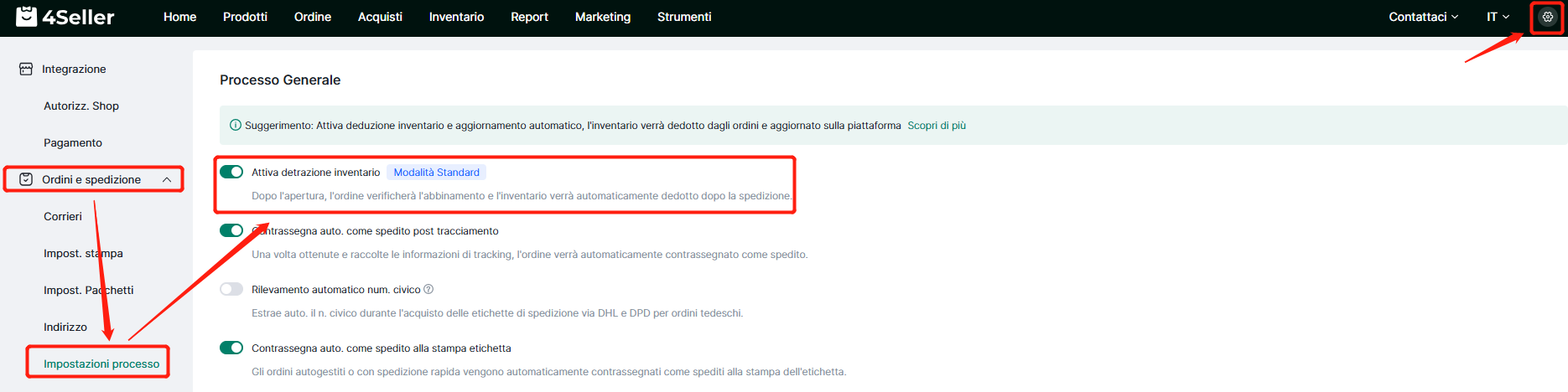Inoltre, dopo che l'utente ha spedito gli ordini tramite 4Seller, le scorte non verranno automaticamente detratte in base alla quantità di prodotti nell'ordine.
