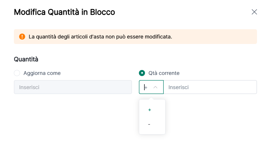 (1) Supporta solo la modifica delle quantità per inserzioni "Acquista Subito"; le quantità d'asta non possono essere modificate;
