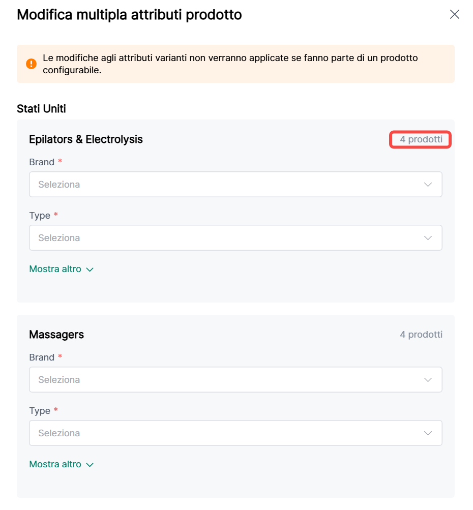 4. Modifica in blocco attributi prodotto: