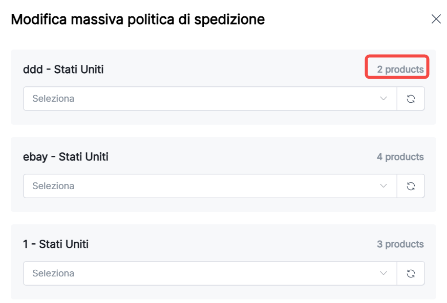 5. Aggiornamento in blocco politiche di spedizione: