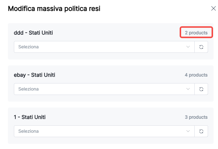 6. Aggiornamento in blocco politiche di reso: