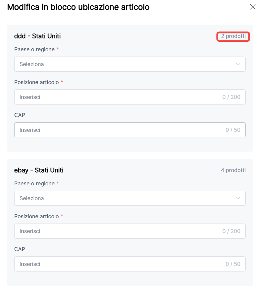 7. Modifica in blocco ubicazione articolo: