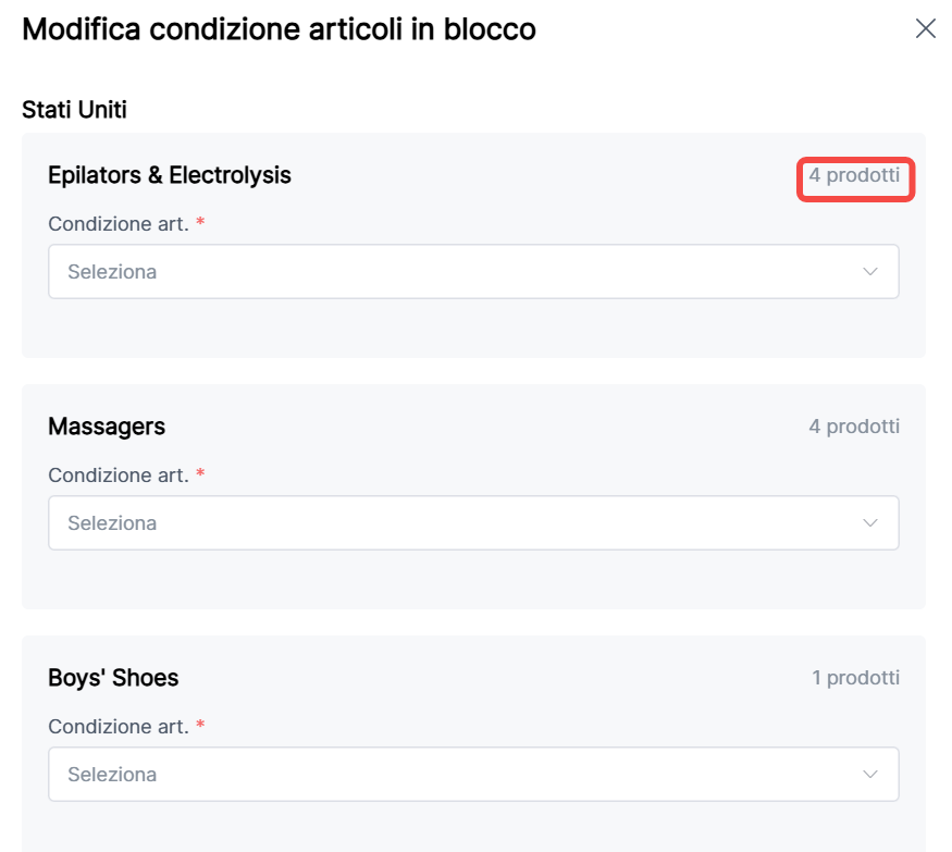 8. Modifica in blocco condizione articolo: