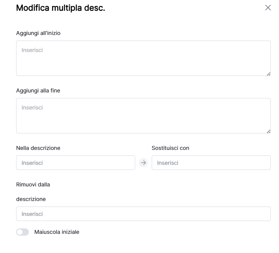10. Modifica in blocco descrizioni: Supporta aggiunta, sostituzione e rimozione contenuti