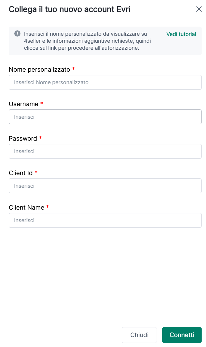 Prima dell'autorizzazione, è necessario contattare EVRI ufficiale per inserire 4Seller nella whitelist con IP: