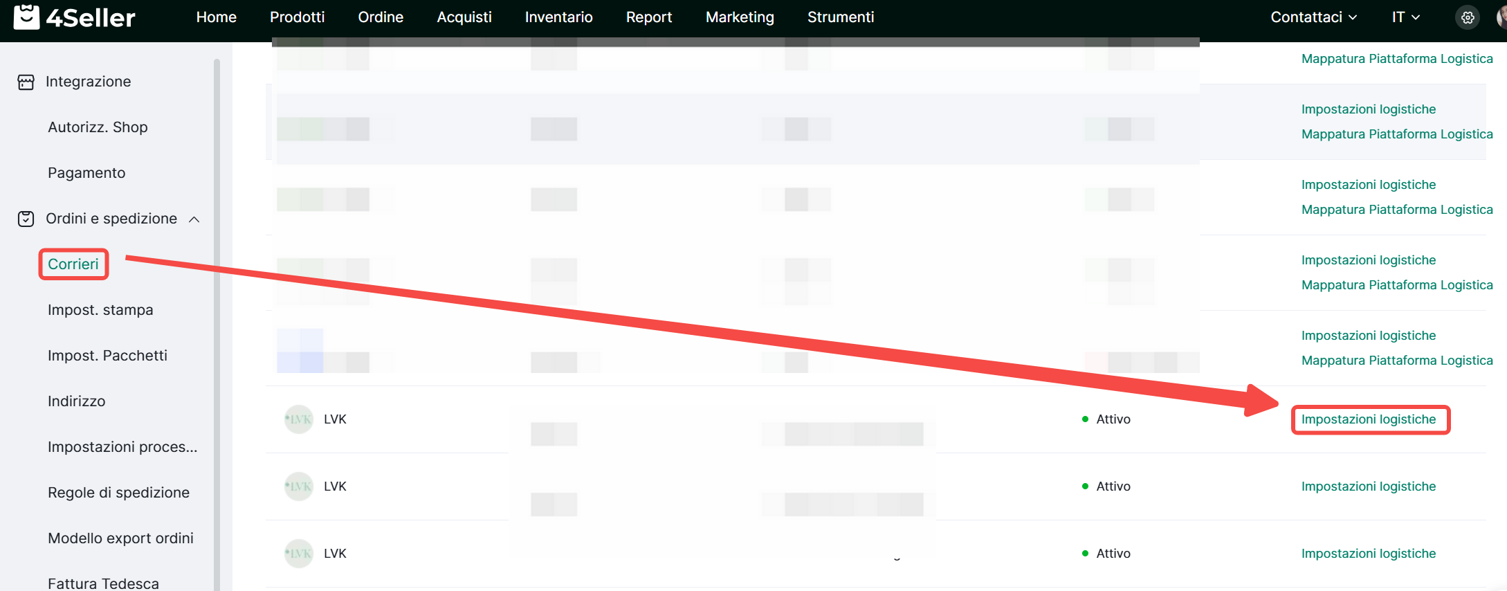 (1) Corrieri di Spedizione - Spedizione 3PF- Impostazioni logistiche;