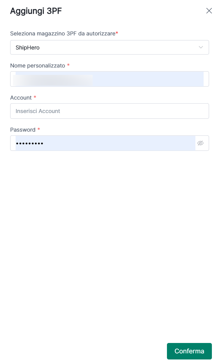 3. Inserisci un nome personalizzato, account e password, poi clicca Conferma per collegare.