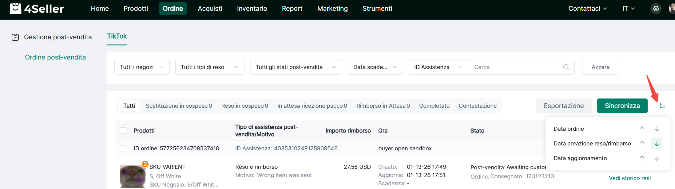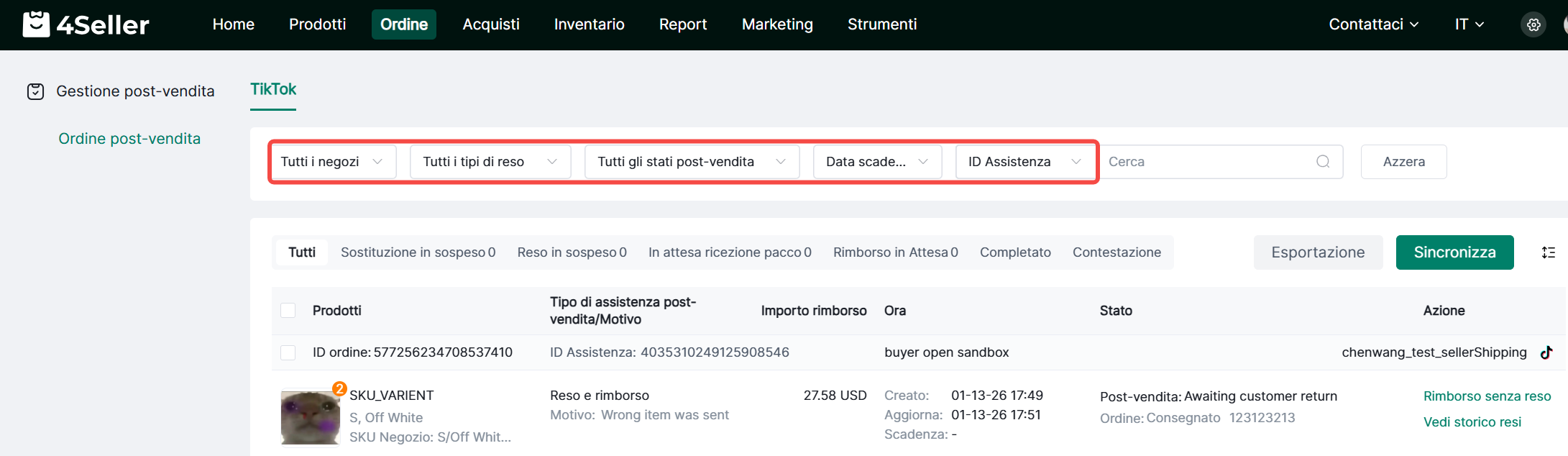 1. Filtra per negozio, tipo reso/rimborso, stato post-vendita, data scadenza e ID post-vendita.