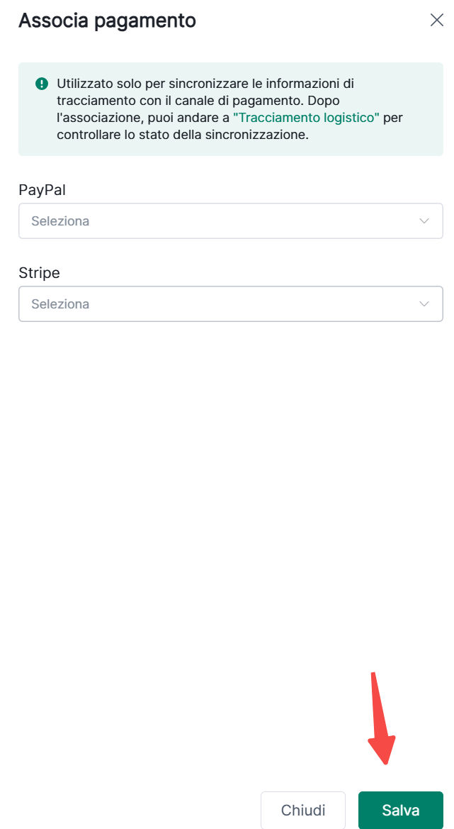 Passo 3: Seleziona account Stripe--Clicca"Salva"