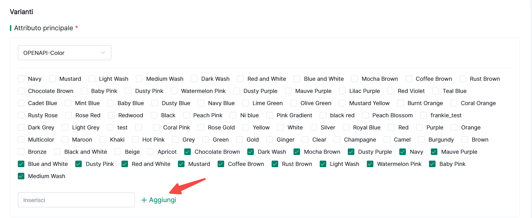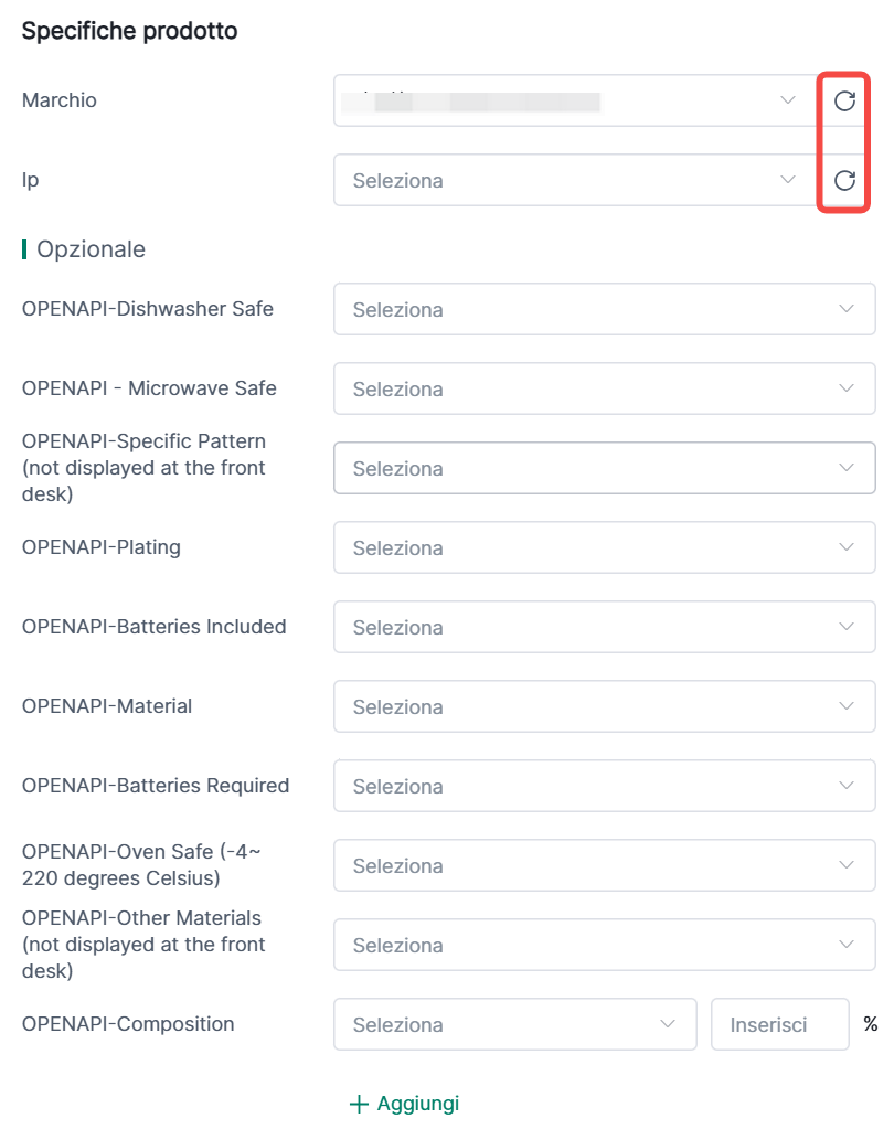 (4) Attributi Prodotto: Selezionabili dopo aggiornamento e sincronizzazione