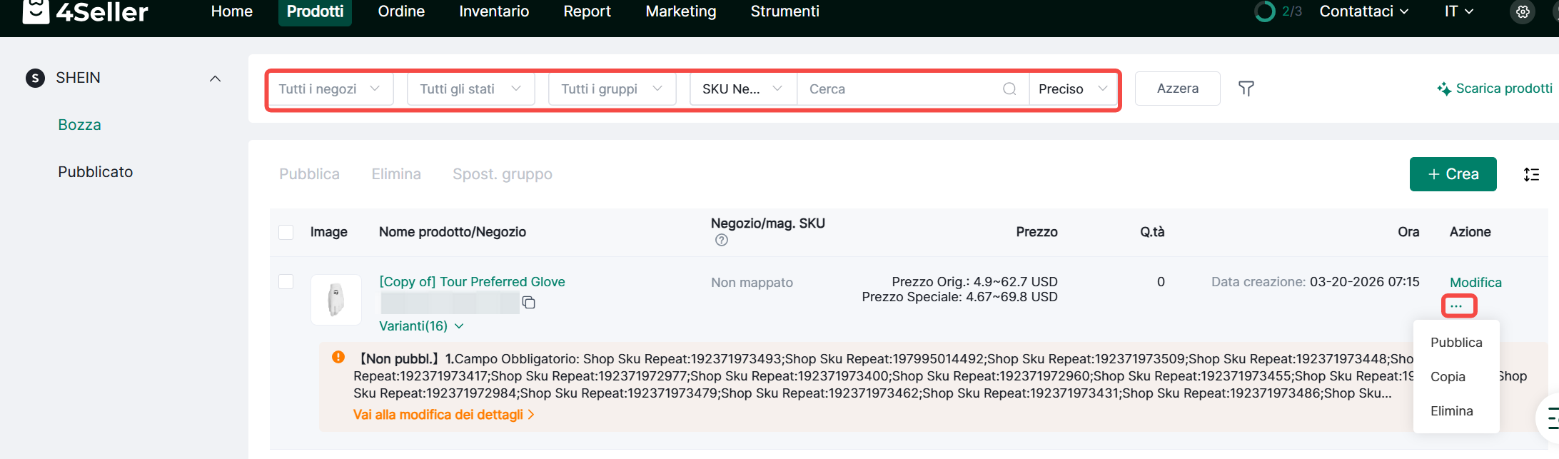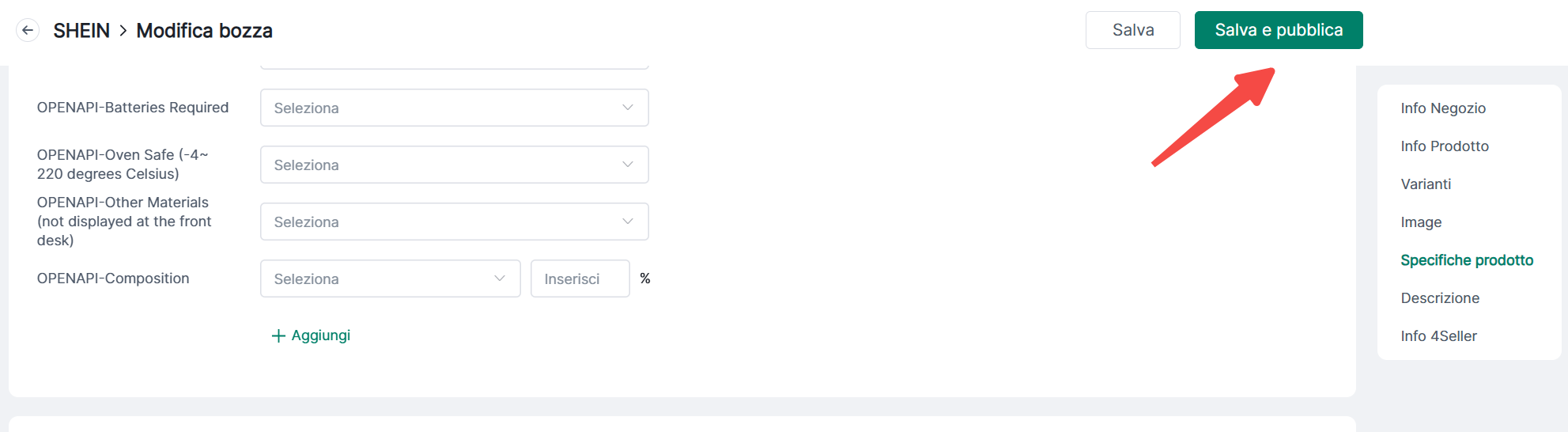 4Seller supporta la creazione e la pubblicazione di prodotti SHEIN