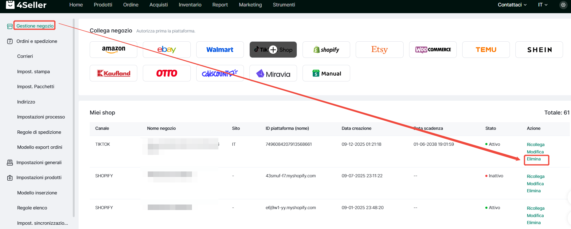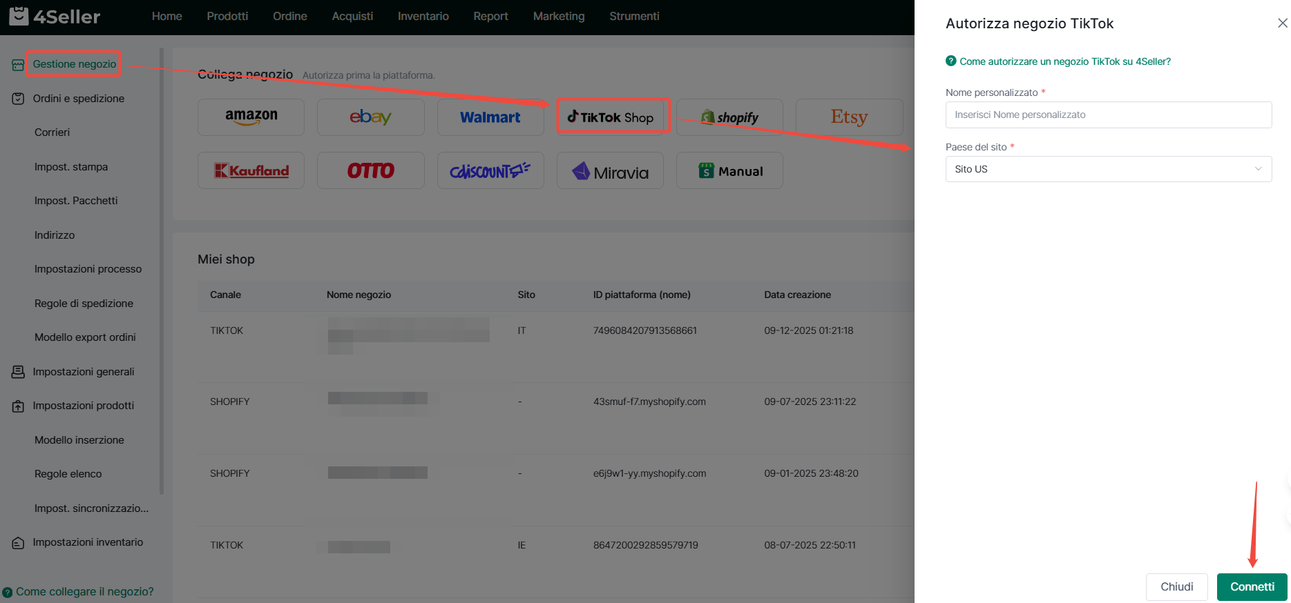 Riaccedi al tuo account 4Seller attuale e riautorizza lo store TikTok.