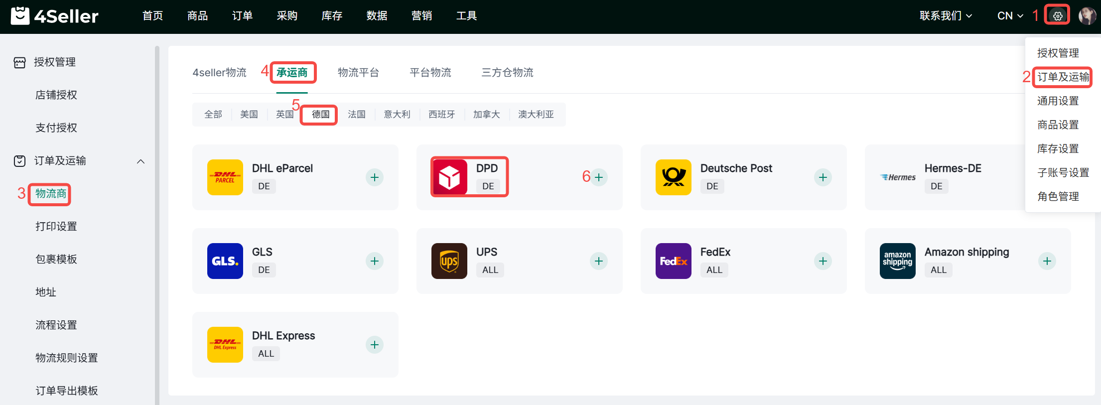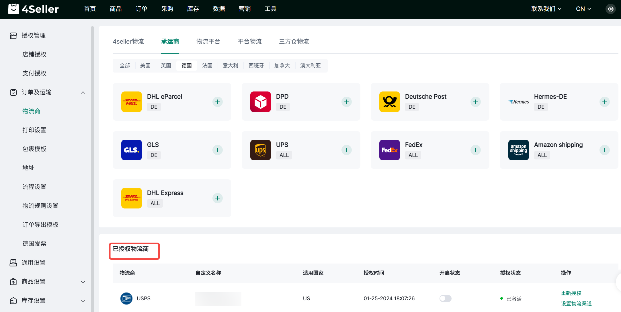 4Seller支持对接德国DPD物流,授权步骤如下:步骤一:联系物流获取授权信息