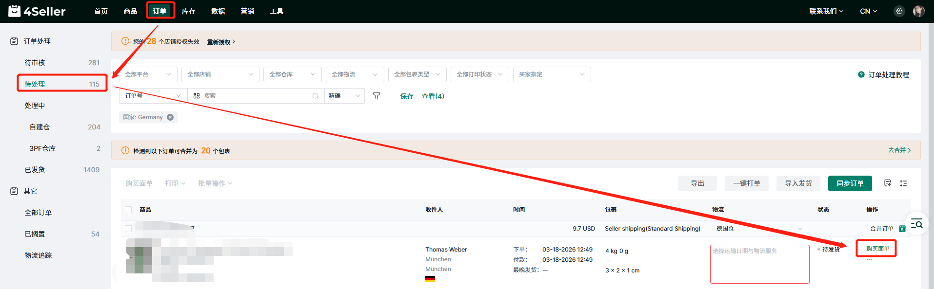 4Seller支持授权DHL eParcel物流并进行订单处理。