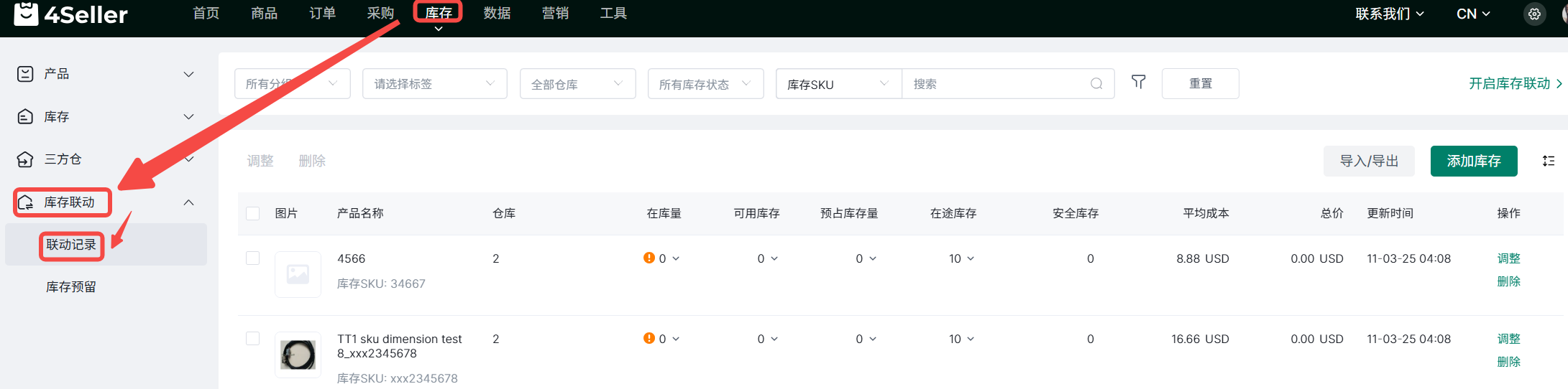 设置完库存同步规则后,可在库存联动页面查看库存变动的同步记录