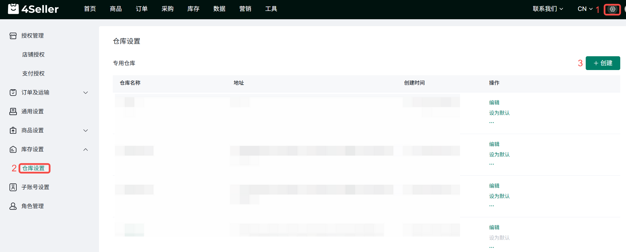 1、点击设置图标>库存设置>仓库设置>创建