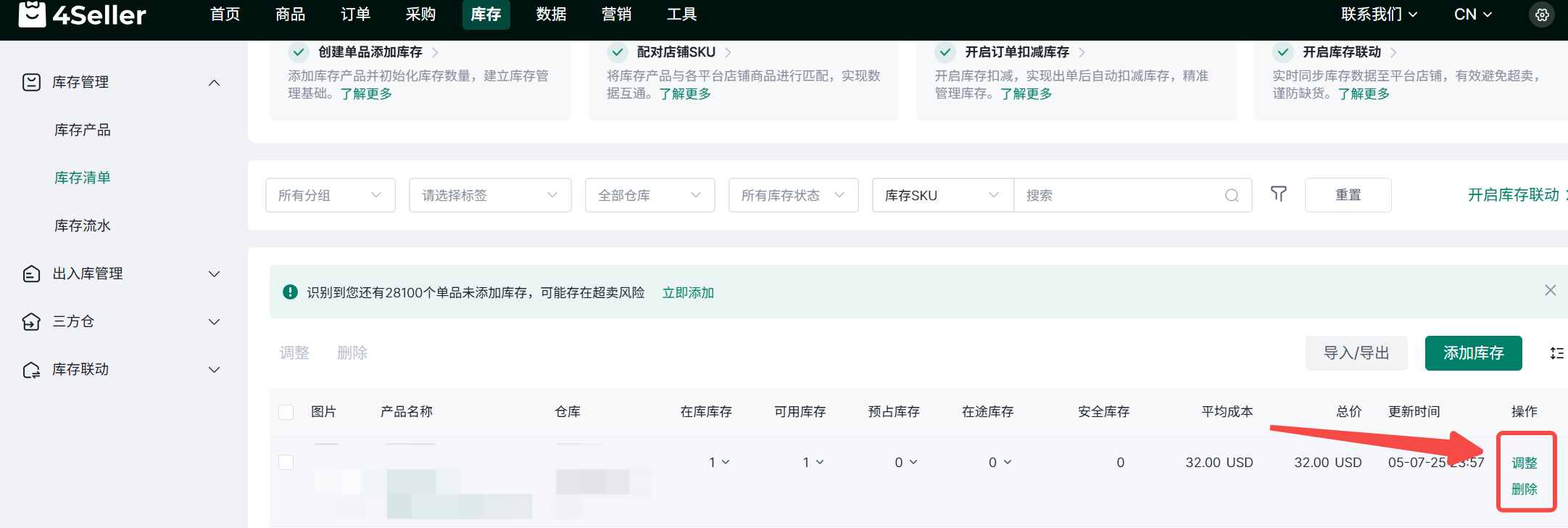 五、如何单独调整库存?