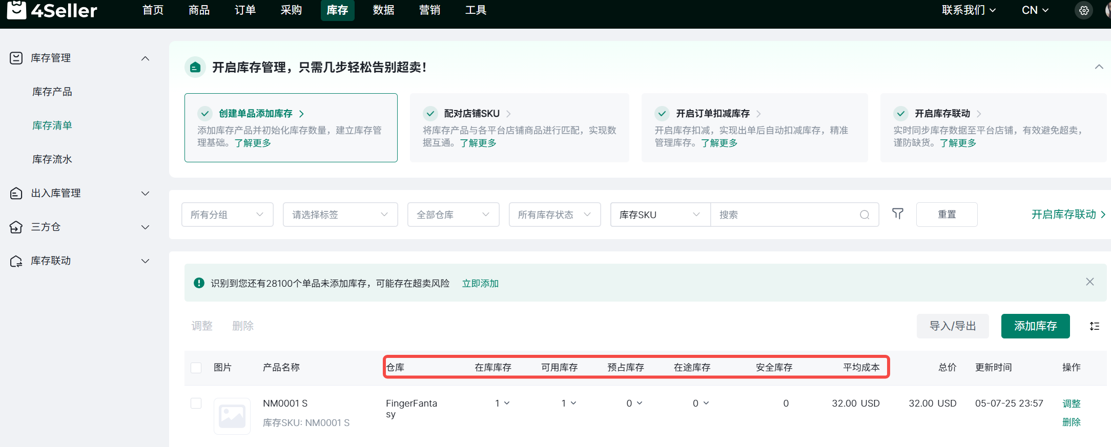 2. 可用库存:可分配的库存。当订单同步到4Seller时,系统会检查匹配的产品SKU是否有足够的可用库存进行分配。如果没有,则会触发库存警报。