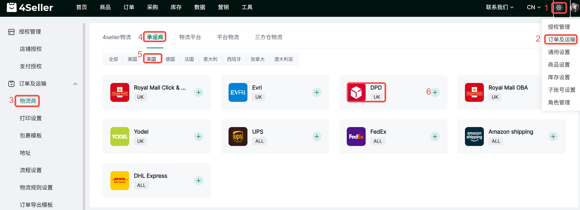 如何授权DPD-UK到4Seller?