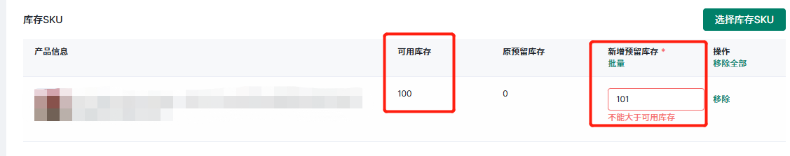 注意:预留的库存将提前预占,按照创建时间进行对应店铺对应sku进行扣减对应的预留库存。