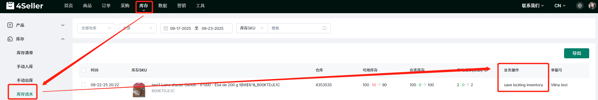 步骤三:创建预留库存后可在库存--库存流水查看预留库存的流水记录