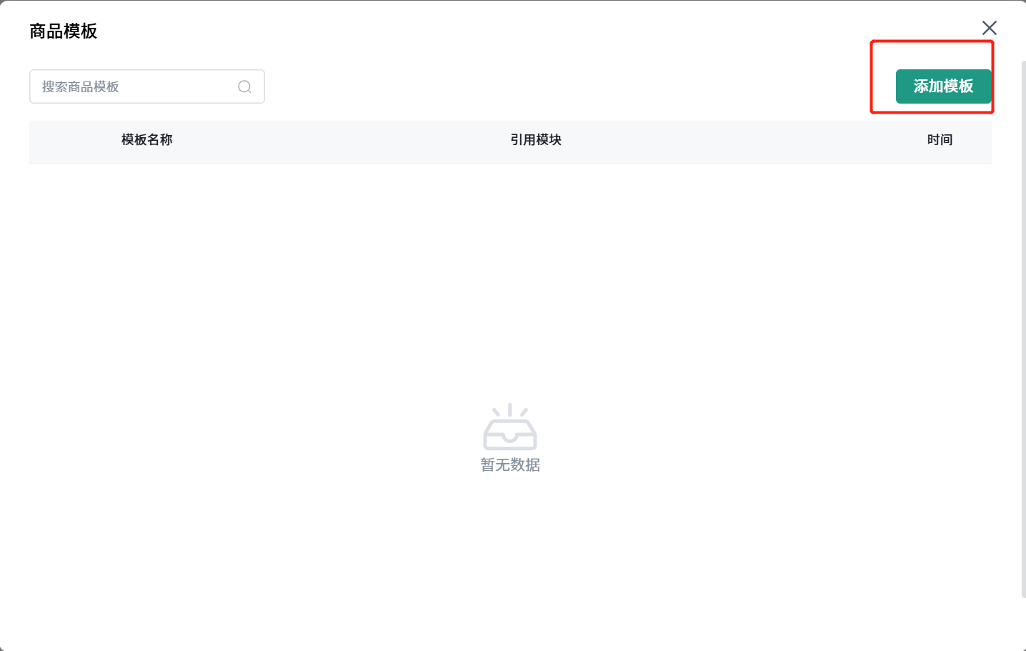 若选择的店铺无创建商品模板,可直接"添加模板"