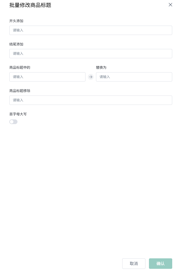 (2)批量修改商品标题,支持开头/结尾添加、替换、或移除的方式,点击确认。