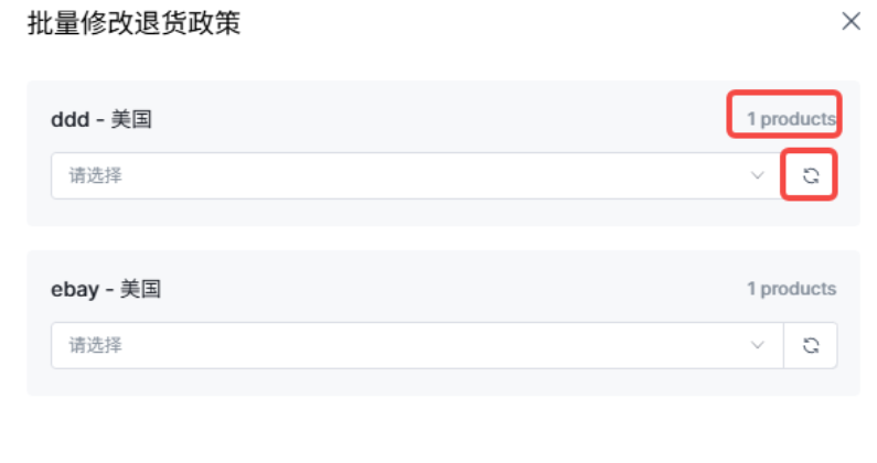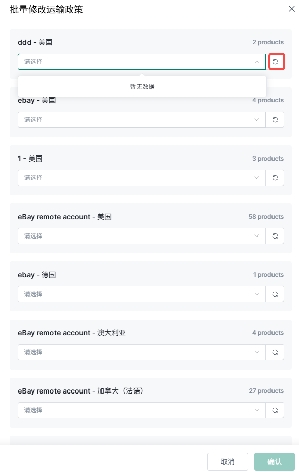 (1)运输政策、退货政策:同步eBay后台设置,点击右侧刷新按钮可进行同步,下拉选择对应选项;