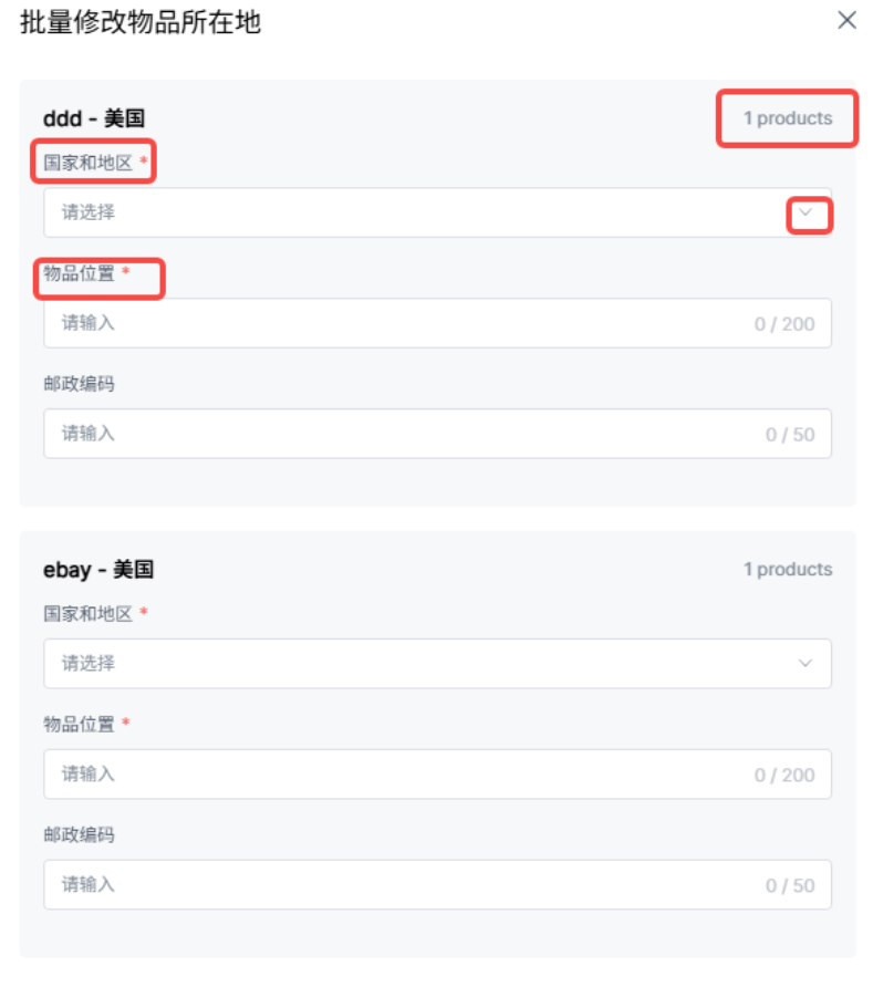 物品位置、邮政编码:可自行填写;