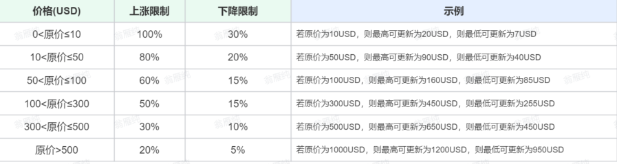 更新价格时报错:失败, 超过价格更新的下限 该报错是由于所更新的价格超过了价格限制,因此需要重新按照限制表更新合适价格。