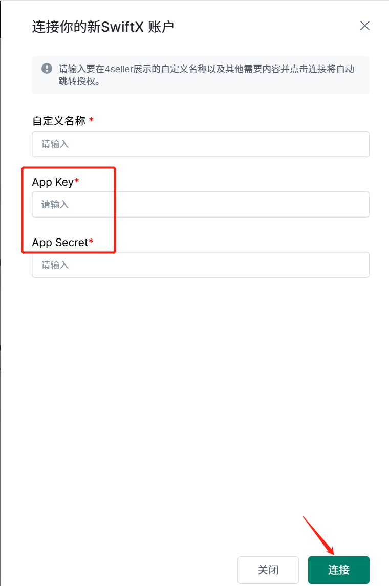 4Seller支持授权SwiftX至4Seller进行发货操作。 步骤一:设置--订单及运输--物流商--承运商--SwiftX 步骤二:填写自定义名称--联系SwiftX官方团队获取App Key & App Secret, 填写完成后点击连接 步骤三:授权成功后可在“已授权物流商”查看授权状态 有任何问题请扫码入群联系4Seller客服团队咨询