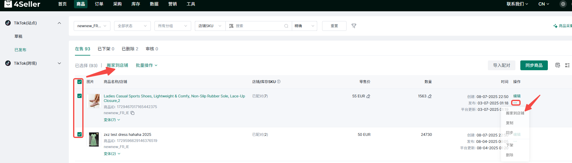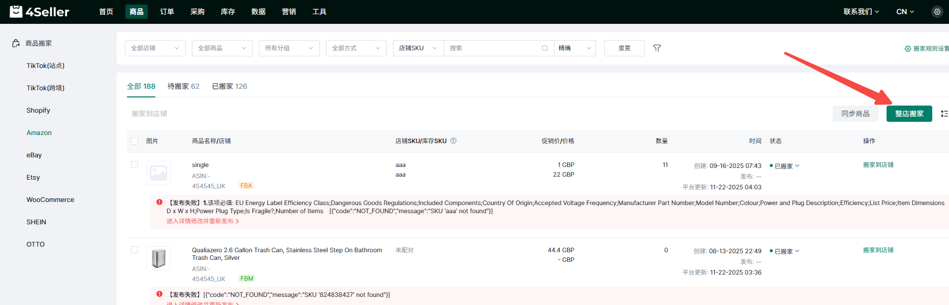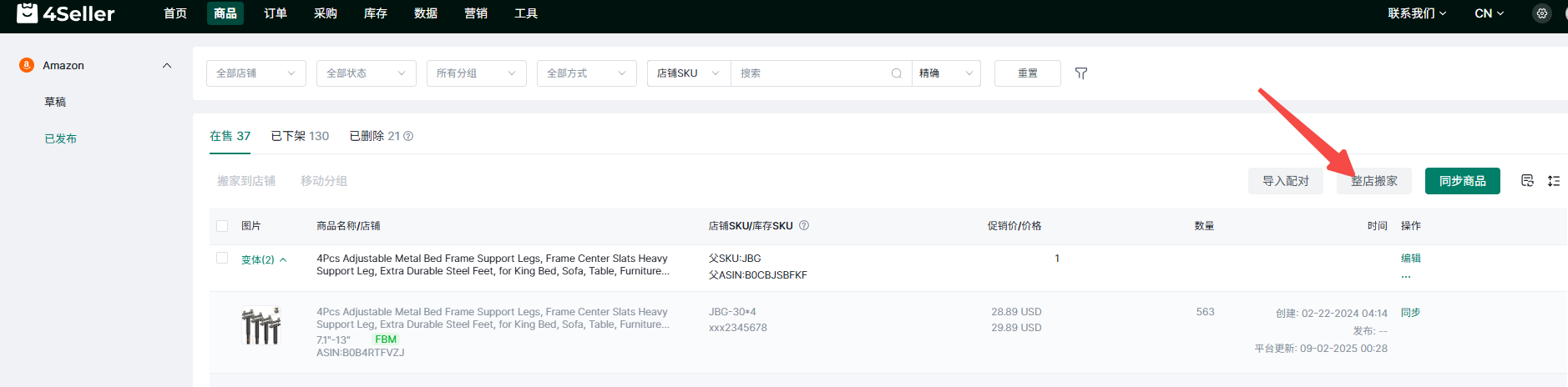 (2)在各平台商品已发布状态页面进行搬家