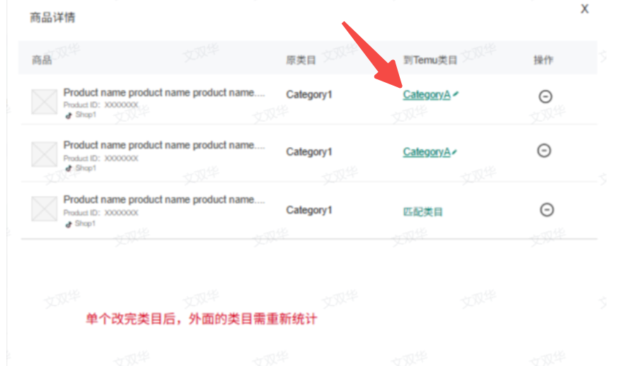 (1)点击查看详情可查看原类目和到Temu类目;